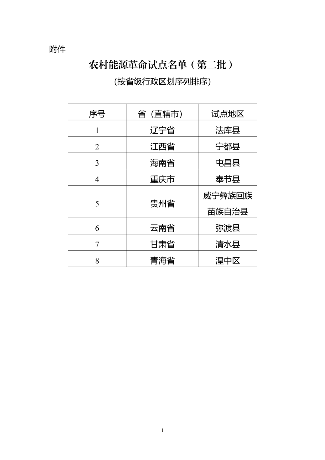 根据《国家能源局 生态环境部 农业农村部 国家乡村振兴局关于组织开展农村能源革命试点县建设的通知》(国能发新能〔2023〕23号)要求,在各省(区、市)申报基础上,经专家评估和复审、部门审定,现将已具备条件的第二批农村能源革命试点名单予以公布(见附件)。