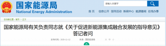 近日,国家能源局印发了《关于促进新能源集成融合发展的指导意见》(国能发新能〔2025〕93号,以下简称《指导意见》)。国家能源局有关负责同志就此接受了记者采访。
