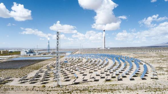 光热发电造就戈壁靓丽的风景线。