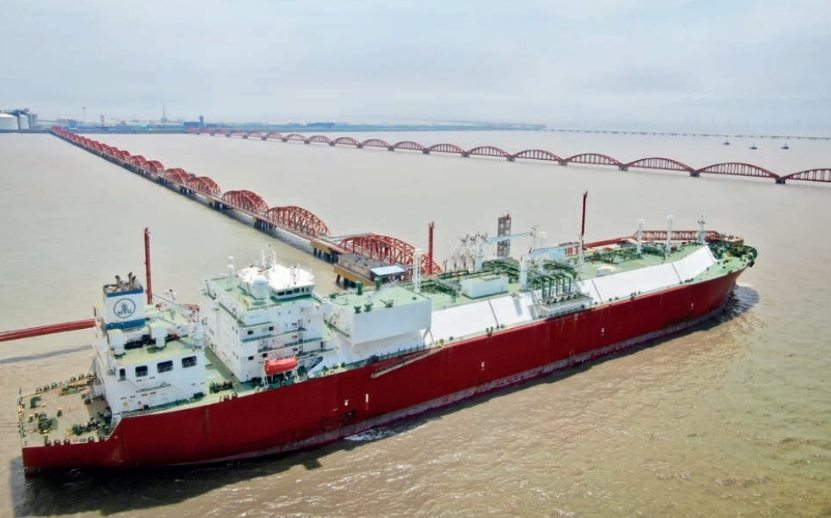 2021年5月28日,江苏南通市如东县洋口港中石油江苏LNG接收站码头,LNG船正在接卸进口天然气。图/IC