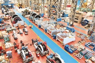 1月8日,工人在江苏南通振华重工南通传动大型海工车间内生产三峡风电施工船重型绞车和升降系统。