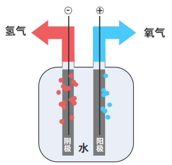 在直流电的作用下,正极的电子会往负极“跑”,负极附近的水和电子发生析氢还原反应,产生氢气和氢氧根离子;氢氧根离子穿过隔膜,“跑”到正极附近会失去电子,发生析氧氧化反应,生成水和氧气。