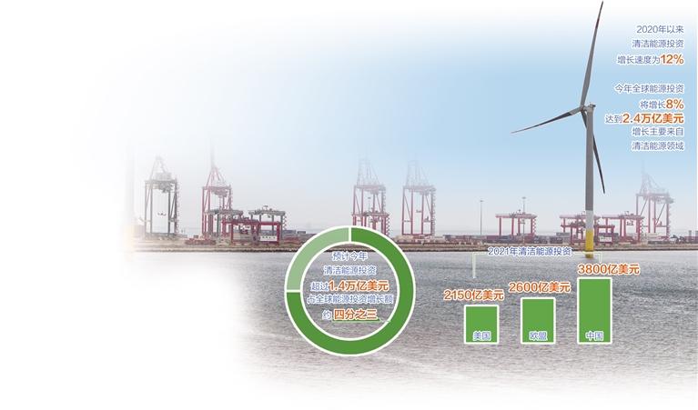 从清洁能源总体投资分布看,预计今年投资将超过1.4万亿美元,占全球能源投资增长额的约四分之三。统计数据显示,2021年,中国的清洁能源投资达到3800亿美元,高居榜首;随后是欧盟,为2600亿美元,美国为2150亿美元。许多国家和地区都把发展清洁能源纳入刺激经济复苏政策的重要组成部分。
