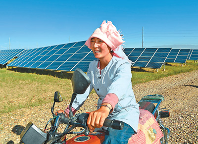 落日余晖中,牧民索南卓玛骑着一辆摩托车,沿着归家的方向,缓缓跟在羊群后面。“自从装了光伏板,生态治理同步发力,一些戈壁滩变成了绿地,我们的生活也越来越好了。”对眼前土地发生的变化,生于斯长于斯的索南卓玛深有感触。