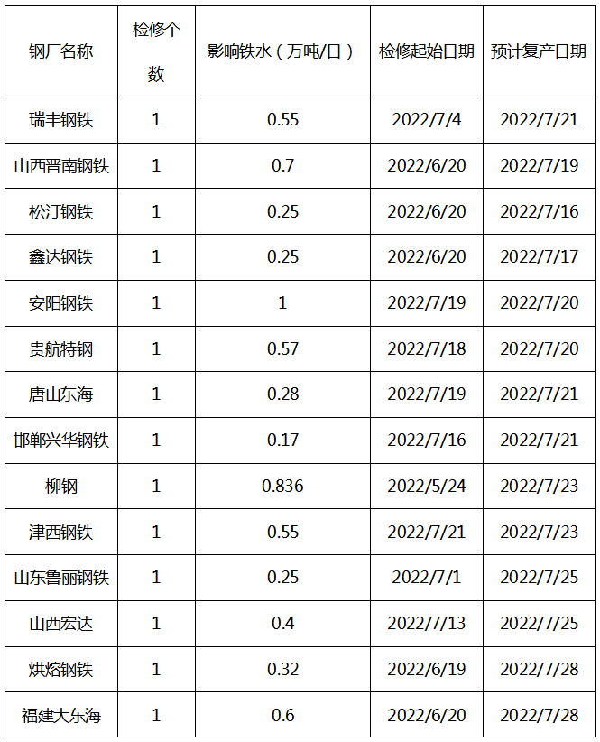 表:近期钢企复产统计