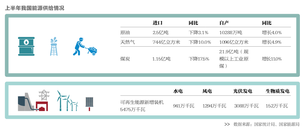 一是加大油气探勘开发力度,提高自身产量。统计数据显示,上半年,我国规模以上工业原油产量10288万吨,同比增长4.0%;天然气产量1096亿立方米,同比增长4.9%。