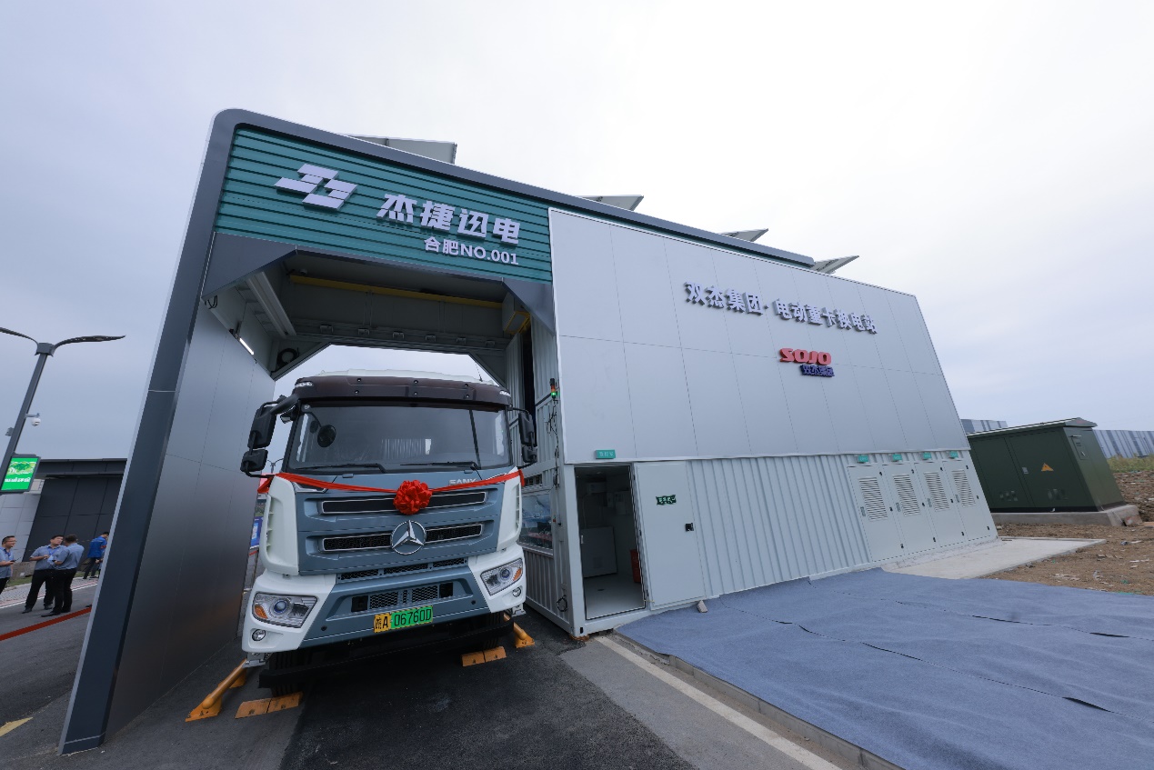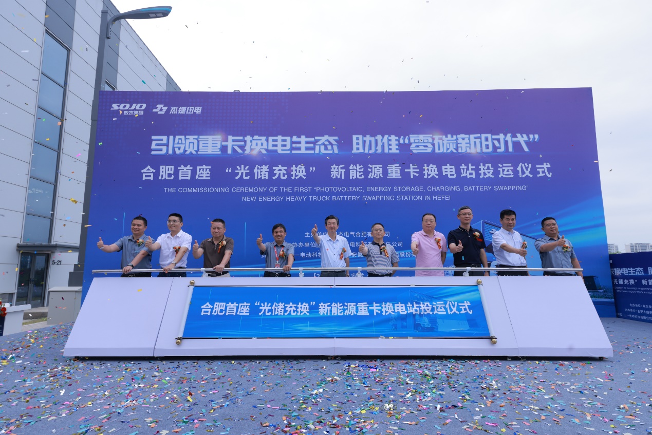 8月26日,综合能源解决方案服务商双杰电气(300444.SZ)在合肥长丰县下塘镇双杰电气产业园,举办了以 “引领重卡换电生态,助推‘零碳新时代’”为主题的合肥首座“光储充换”新能源重卡换电站投运仪式。省、市、县、镇领导及三一电动、江汽集团、北奔重汽、福田汽车、国皖公司、安徽良亿、长丰海螺等战略合作伙伴企业嘉宾受邀莅临现场。