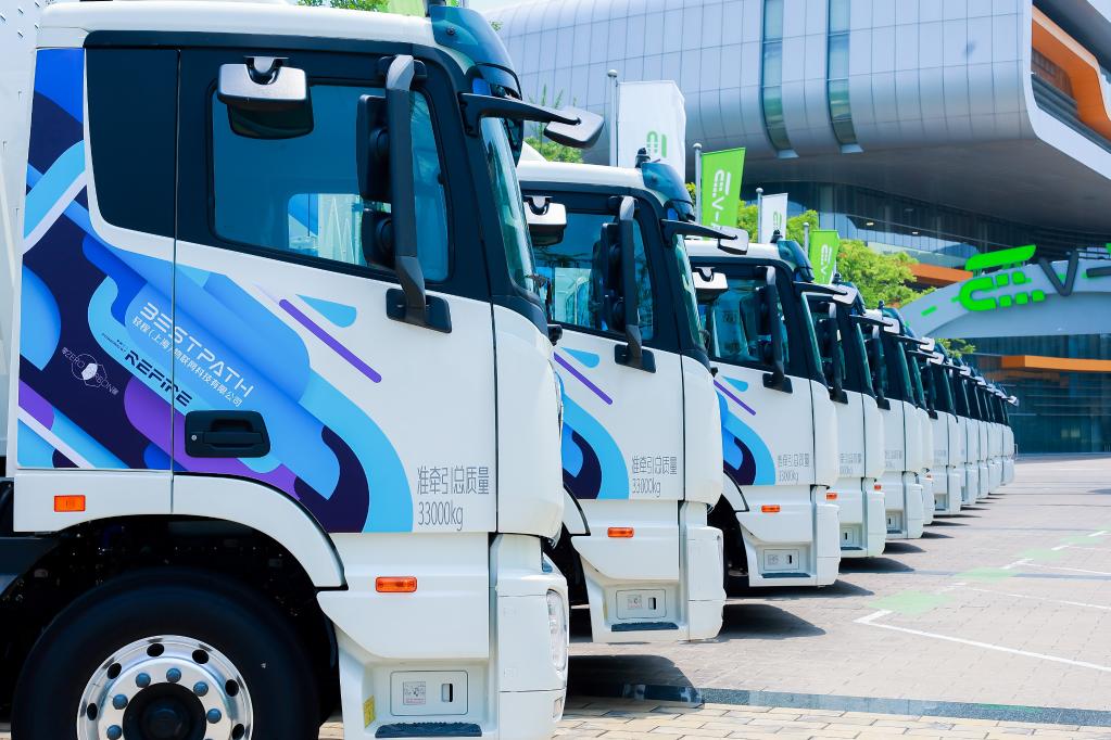 图为上海重塑能源集团与福田汽车合作投运的一批42吨氢燃料电池重卡(受访者供图)