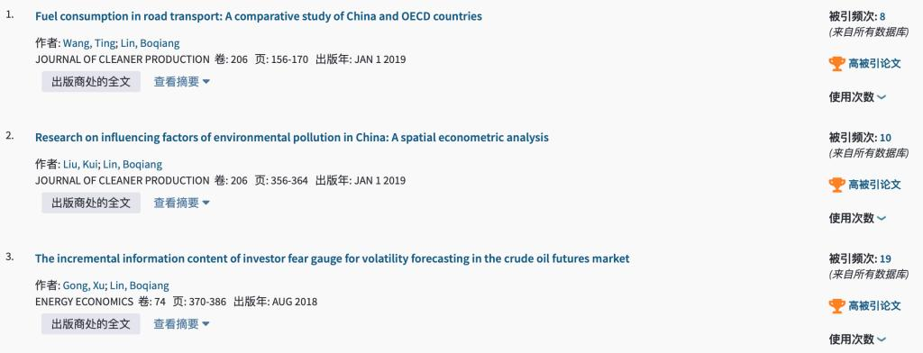 据ESI(Essential Science Indicators)数据库2019年11月的数据显示,厦门大学管理学院中国能源政策研究院院长、能源经济与能源政策协同创新中心主任林伯强教授为通讯作者发表的3篇学术论文新增入选为ESI高被引论文(ESI-Highly Cited Papers)。截至目前,以林伯强教授为第一作者或通讯作者的学术论文共有43篇入选ESI高被引论文。