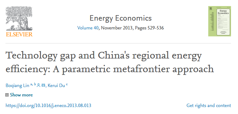 题目:技术差距与中国区域能源效率:参数化共同前沿方法(Technology gap and China's regional energy efficiency: A parametric metafrontier approach)