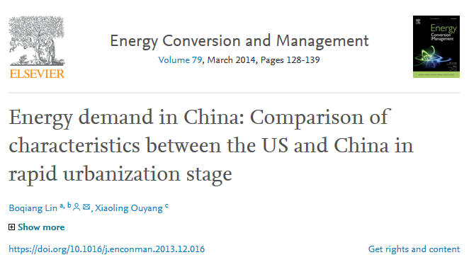 题目:中国的能源需求:快速城市化阶段美国与中国的特征比较(Energy demand in China: Comparison of characteristics between the US and China in rapid urbanization stage)