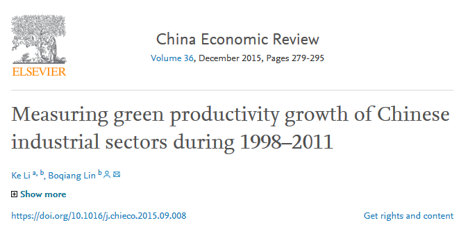 题目:衡量1998-2011年中国工业部门绿色生产力增长(Measuring green productivity growth of Chinese industrial sectors during 1998–2011)