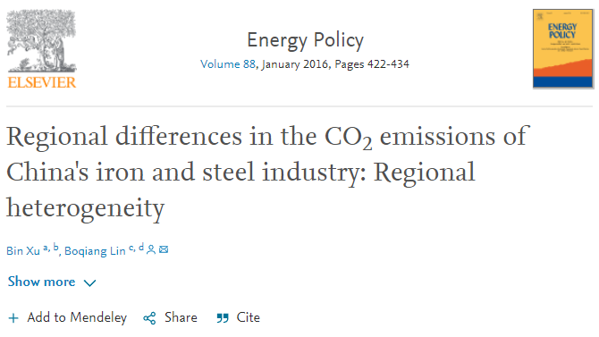 题目:中国钢铁行业二氧化碳排放的区域差异:区域异质性 (Regional differences in the CO2 emissions of China's iron and steel industry: Regional heterogeneity)