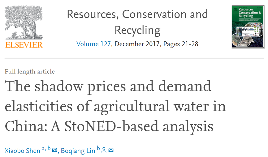 题目:中国农业用水的影子价格和需求弹性:基于STONED的分析(The shadow prices and demand elasticities of agricultural water in China: A STONED-based analysis)