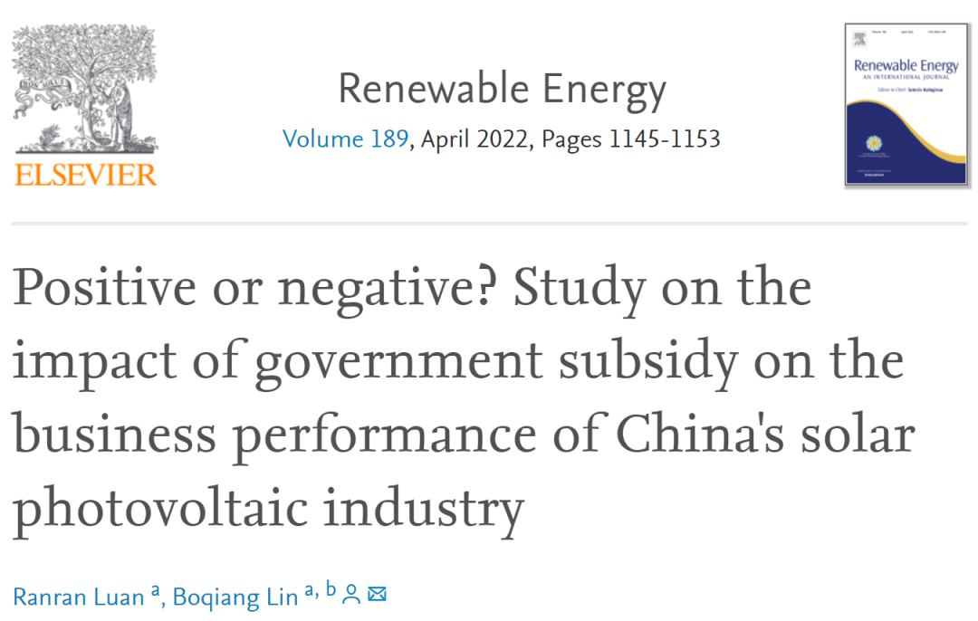 题目:正向还是负向?政府补贴对中国太阳能光伏产业经营业绩的影响研究(Positive or negative? Study on the impact of government subsidy on the business performance of China's solar photovoltaic industry)