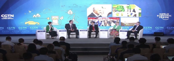 图为2018夏季达沃斯论坛中国绿色领导力专题讨论现场
