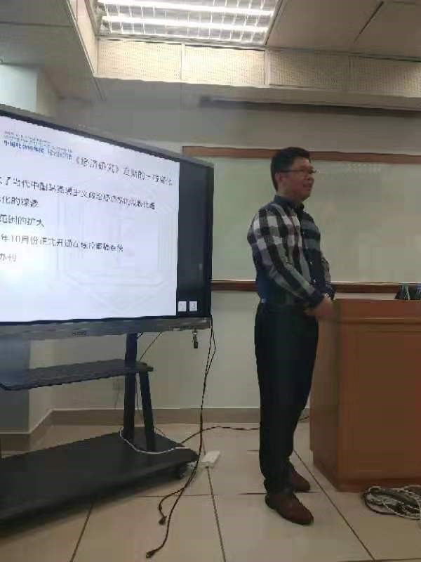 谢谦副研究员首先对《经济研究》的基本情况进行介绍,对各细分学科发文数量比重进行了说明,接着分享了论文写作过程中应该注意的经济学理论、方法和规范等。《经济研究》是立足于中国国情的期刊,偏好将落脚点放在中国问题上的论文,因此也加强了对马克思主义政治经济学的关注。谢谦副研究员还分享了匿名审稿人的关注点,包括选题、逻辑思路、经典文献和最新研究进展是否涵盖在文献中、创新性、科学性、数据来源及处理恰当性等。此外,现在出现需要结合文章计算结果在文章最后给出针对性建议的趋势。参与讲座的师生对于《经济研究》等期刊有了更为深入的了解。
